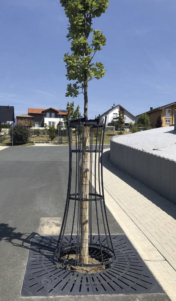 Im Zuge der Klimaveränderungen sollte auch in neu erschlossenen Baugebieten darauf geachtet werden, dass nachhaltige Baumpflanzlösungen angewendet werden. Der Guss-Baumrost mit dem Stahl-Stammschutzgitter bietet dem Baum einen guten Schutz vor Havarie und erfordert nur ein Minimum an Pflege. Dank des 2.0 Systems sind die Baumroste freitragend bis 50 kN belastbar und schützen die Baumscheibe optimal.
